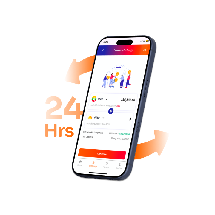 Exchange MMK for global currencies or Digital Gold any hour of the day. Instant conversions and real-time execution ensure your funds are always available immediately.